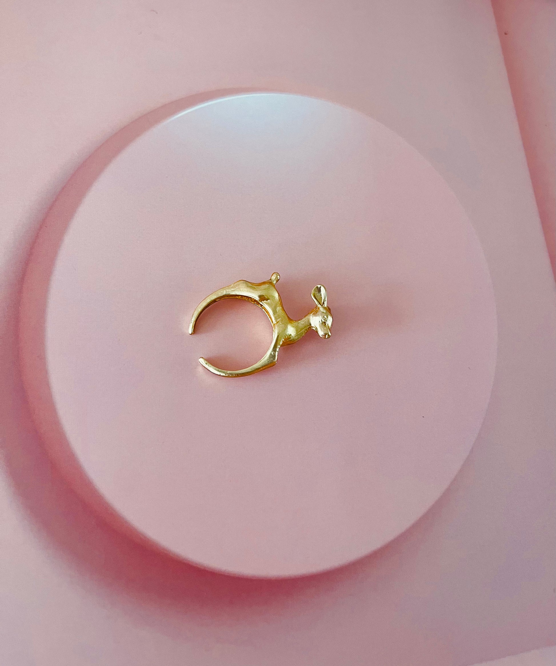 A 14k golden ring in the shape of a gazelle